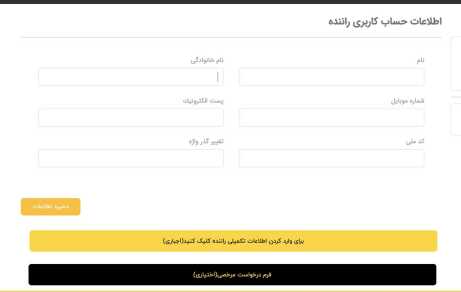 توجه کنید که هر راننده باید یکبار فرم اطلاعات تکمیلی را وارد کند پس در وارد کردن اطلاعات دقت فرمایید!